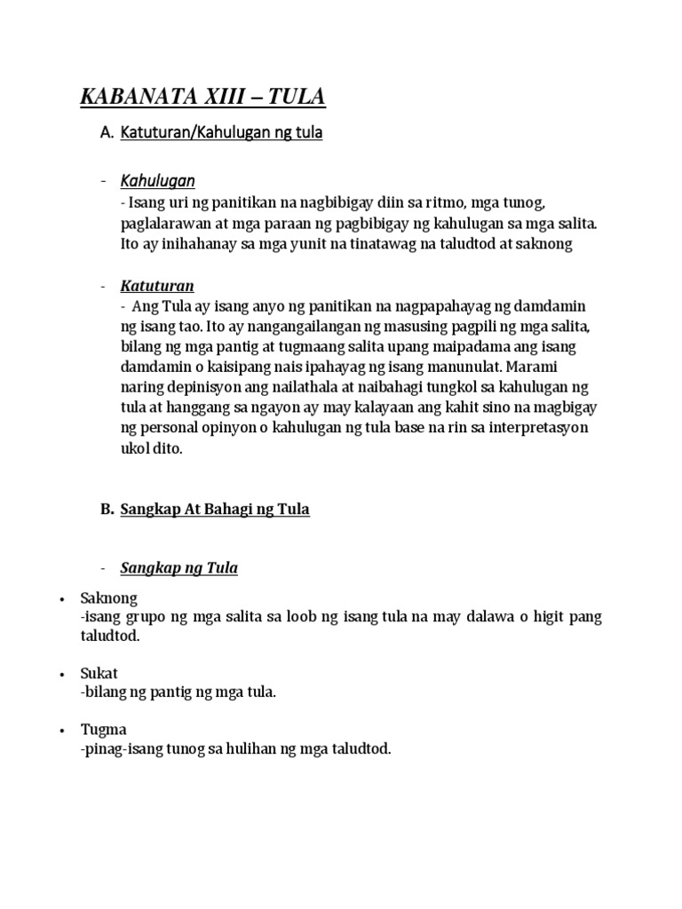 Kabanata Xiii Tula A Katuturan Kahulugan Ng Tula Kahulugan