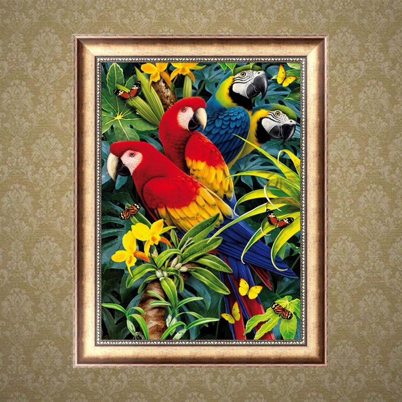 Lukisan Dekorasi Rumah Gambar Burung Beo Dan Bunga Kerajinan Bahan Rajutan Berlian 5d Shopee Indonesia