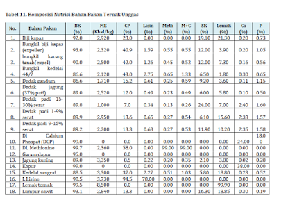 Tabel Kandungan Nutrisi Bahan Pakan Ternak